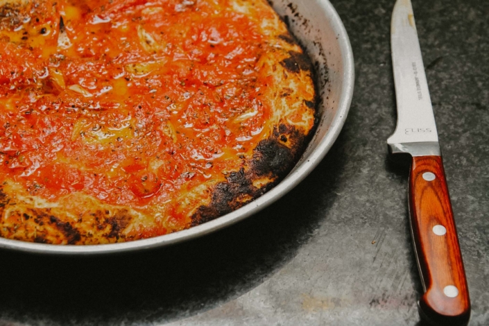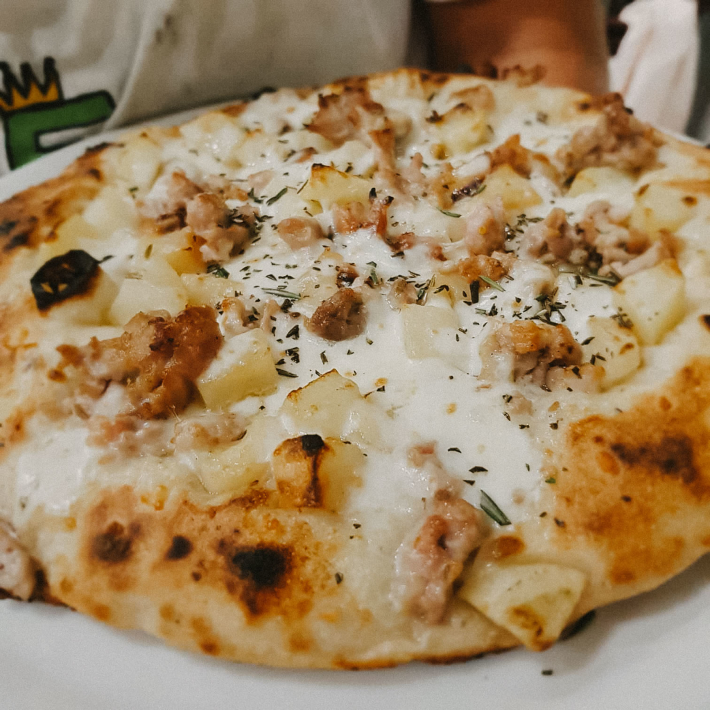 Alta, morbida, umida il giusto con un pomodoro spettacolare e quel sentore di bruciaticcio che fa tanto focolare di una volta. Solo per una fetta varrebbe la pena mettersi in macchina e triturare i chilometri necessari per arrivare fin qui.